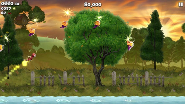 螢火之旅,一款森林的冒險(xiǎn)跑酷游戲,濃郁的森林風(fēng)格,可愛(ài)的動(dòng)作造型,更有十分有趣的操作,跳躍, 飛行,攻擊,物品搜集,好玩的劇情,盡在于此。游戲中玩家將扮演一只想要穿越叢林的小蜜蜂,小蜜蜂時(shí)而飛翔,時(shí)而在地上奔跑,時(shí)而還可以扔出自己心愛(ài)的櫻桃攻擊怪獸??傊婕以谟螒蛑行枰牟⒉皇瞧渌芸犷?lèi)游戲的快節(jié)奏,迅速反應(yīng),需要慢慢的收集金幣道具和叢林怪物作斗爭(zhēng)。