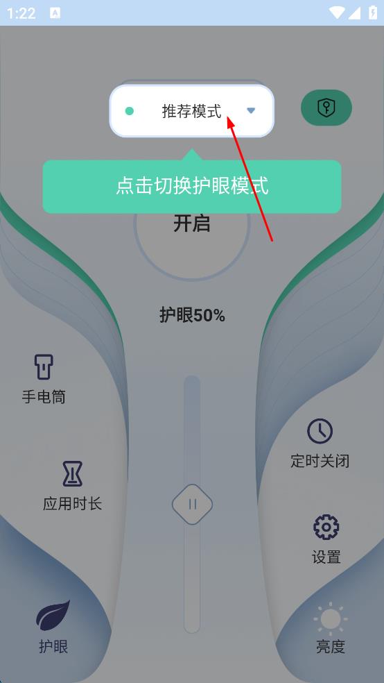 1、打開護(hù)眼類軟件,點(diǎn)擊“推薦模式”下拉箭頭,展開模式選擇列表。