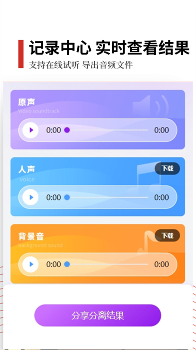 聲音分離助手安卓版是一款可以讓用戶們對于音頻內(nèi)容剪輯提供更好服務(wù)幫助的應(yīng)用,在下可以輕松的處理手機(jī)聲音處理,方便用戶們可以自由的更改音頻的格式轉(zhuǎn)換,打造一個(gè)快速人聲和背景音樂得到完美分離。