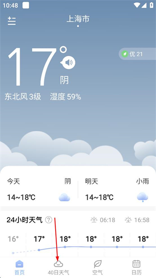 2、點擊“40日天氣”選項,進入40日天氣查詢界面。