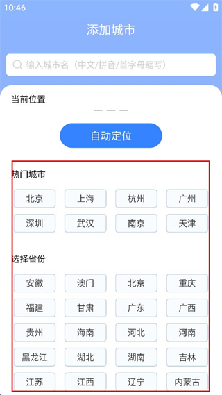1、在添加城市界面選擇城市,以上海為例,完成城市添加。