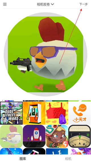 1、打開vs剪輯軟件,在相機膠卷界面中,選擇要添加印章的素材,點擊右上角下一步。