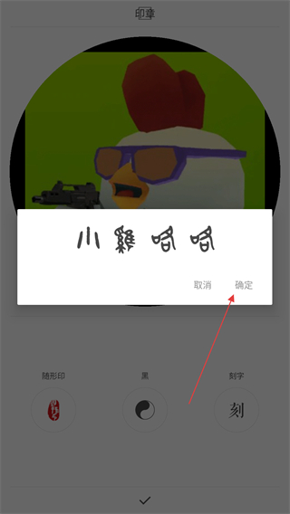 3、在印章設置界面,點擊刻字按鈕,輸入想要刻印的文字內容,輸入完后點擊確定。