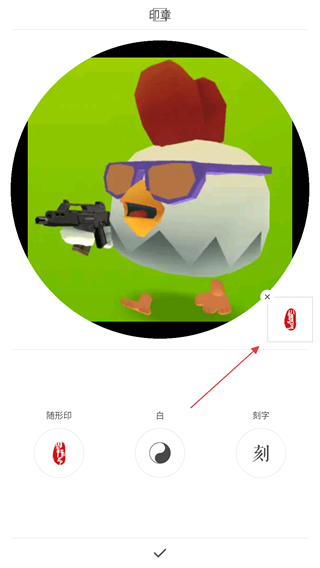 4、確定了之后,設置好的印章會出現(xiàn)在圖片上,即可隨意調整印章的位置和大小。