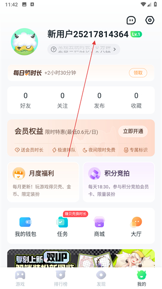1、打開870游戲盒,在我的點(diǎn)擊用戶名。