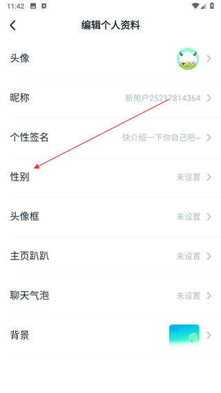 3、在編輯個(gè)人資料頁面,點(diǎn)擊性別選項(xiàng)。
