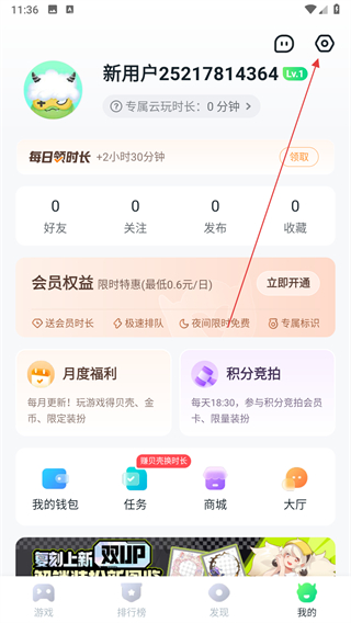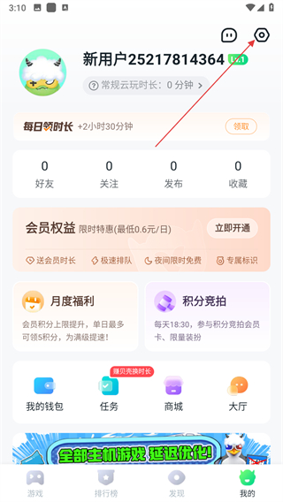 1、打開(kāi)870游戲盒,進(jìn)入個(gè)人中心頁(yè)面,然后點(diǎn)擊右上角的設(shè)置圖標(biāo)。