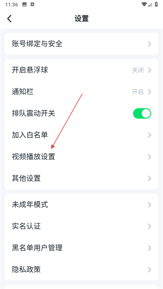 3、在設(shè)置頁(yè)面,點(diǎn)擊視頻播放設(shè)置選項(xiàng)。