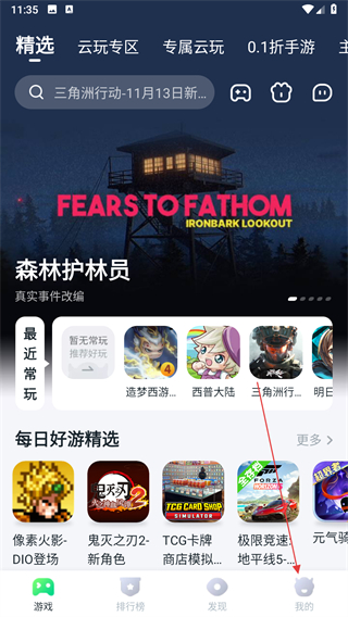 1、打開(kāi)870游戲盒應(yīng)用,點(diǎn)擊底部游戲板塊,在每日好游精選、最近常玩等列表中找到需分享的游戲,點(diǎn)擊進(jìn)入該游戲詳情頁(yè)面。