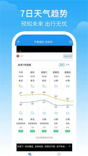 2、能夠預(yù)測未來一個星期的天氣變化情況,讓您能夠提前做出外出計劃安排。