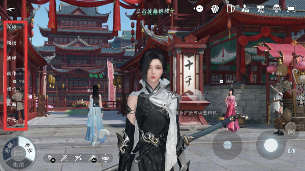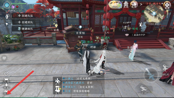 1、進(jìn)入逆水寒手游游戲主界面,點(diǎn)擊屏幕左側(cè)的拍照按鈕。