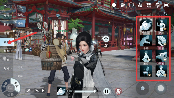 3、在動(dòng)作頁面,選擇自己喜愛的動(dòng)作進(jìn)行拍攝。