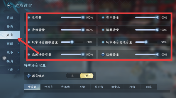 3、進入左側(cè)的聲音選項,可以看到多種音量調(diào)節(jié)條,拖動調(diào)節(jié)條,即可調(diào)整音量大小。
