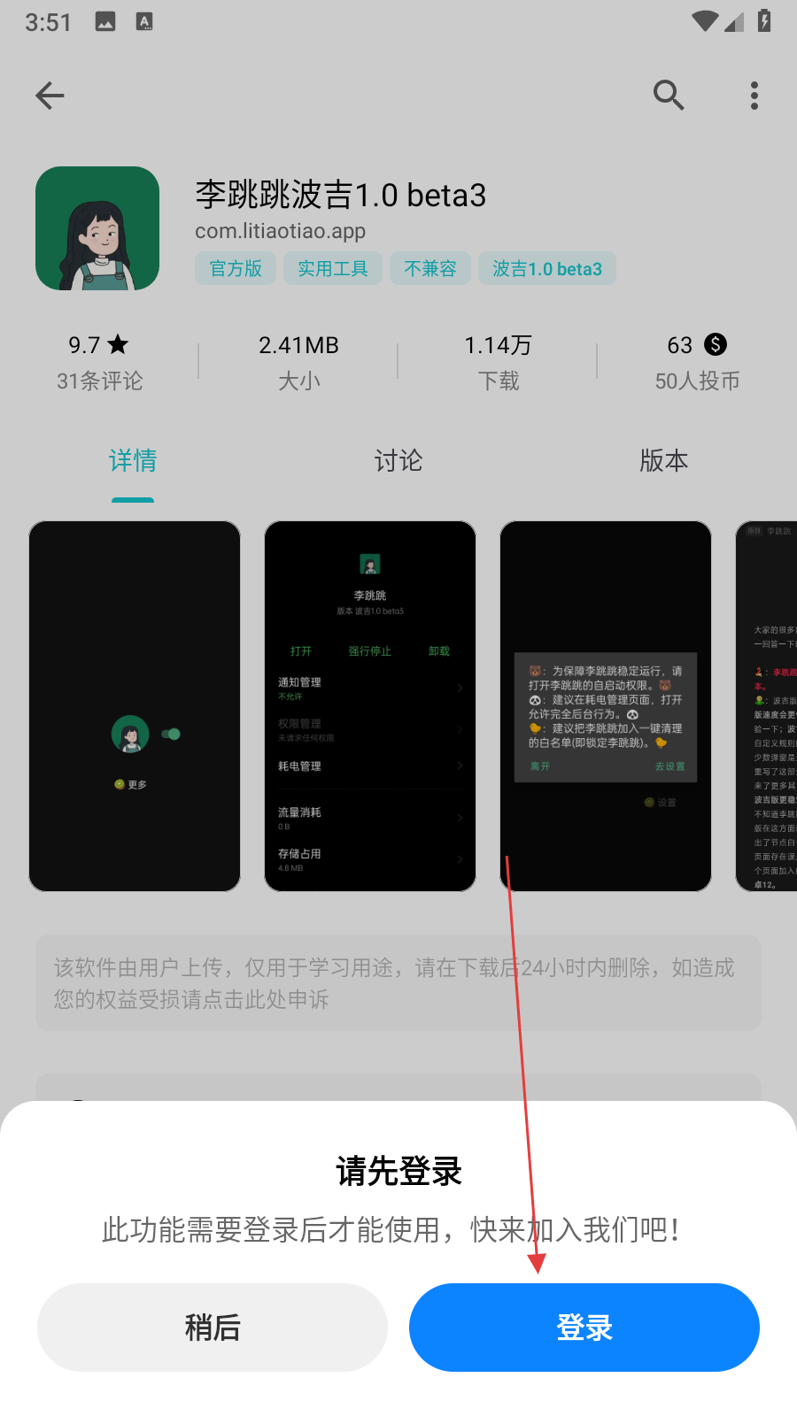 3、點(diǎn)擊投幣按鈕后會(huì)彈出請(qǐng)先登錄提示,點(diǎn)擊提示框中的登錄按鈕,按照系統(tǒng)提示完成賬號(hào)登錄流程。