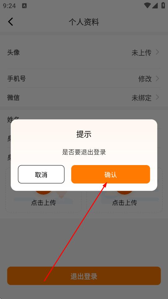 4、在彈出的是否要退出登錄提示框中,點(diǎn)擊確認(rèn),完成退出登錄操作。