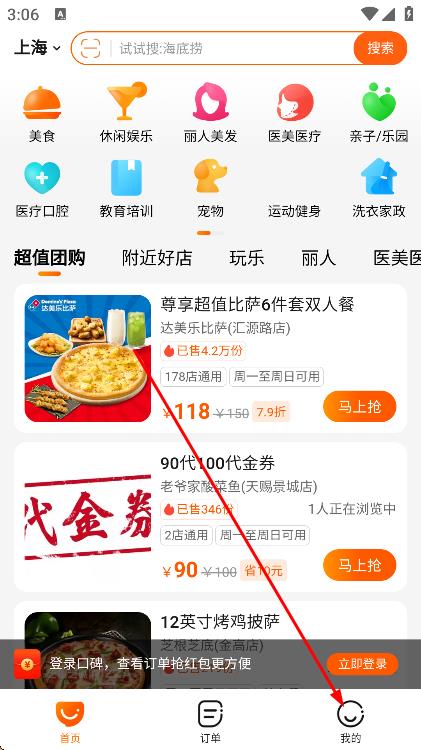 1、打開口碑APP,點擊底部導(dǎo)航欄的我的選項,進入個人頁面。