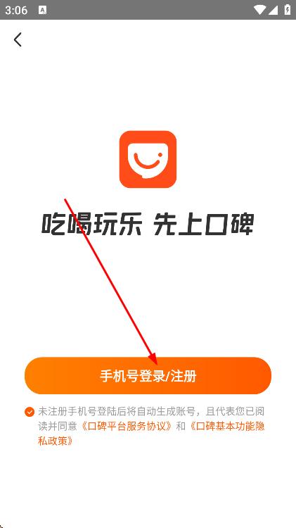 3、進入登錄頁面后,點擊手機號登錄/注冊按鈕。