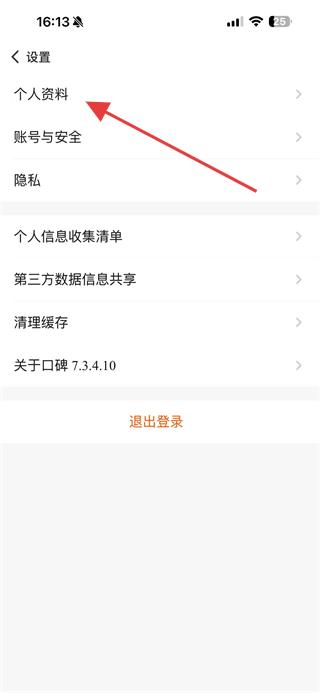 3、在設(shè)置界面里,點擊個人資料選項,進入個人資料頁面。