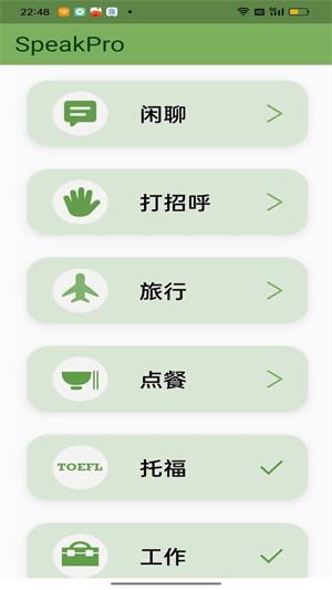2、提供了場景模擬功能,幫助用戶理解不同的場景能夠運用不同的英語表達。