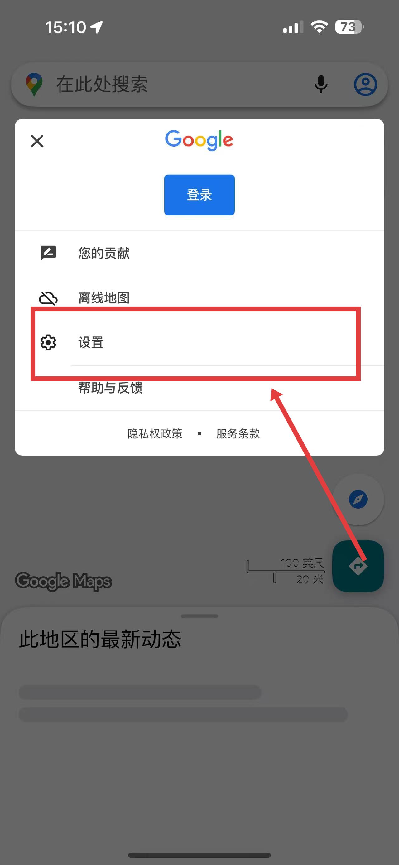 1、打開谷歌地圖應(yīng)用,點(diǎn)擊左上角區(qū)域喚出菜單,然后點(diǎn)擊設(shè)置選項(xiàng)進(jìn)入設(shè)置頁面。