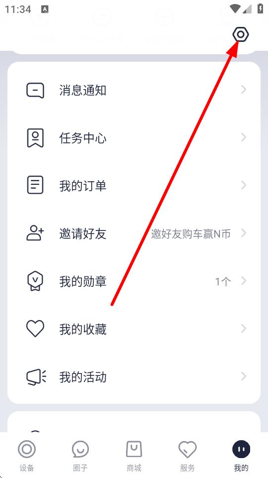 2、在個(gè)人頁(yè)面右上角,點(diǎn)擊設(shè)置圖標(biāo)進(jìn)入設(shè)置界面。