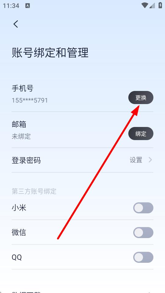4、在賬號(hào)綁定和管理頁(yè)面里,點(diǎn)擊手機(jī)號(hào)右側(cè)的更換按鈕,按照提示完成手機(jī)號(hào)碼更改操作。