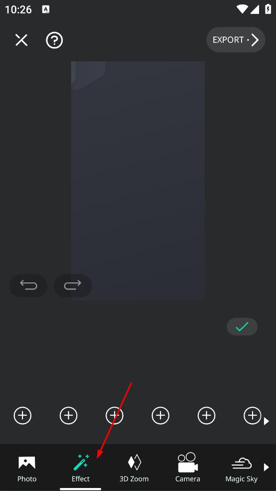 2、在圖片編輯界面中,找到底部的“Effect”(特效)選項(xiàng),點(diǎn)擊“Effect”選項(xiàng),展開(kāi)特效選擇列表,準(zhǔn)備為圖片添加特效。