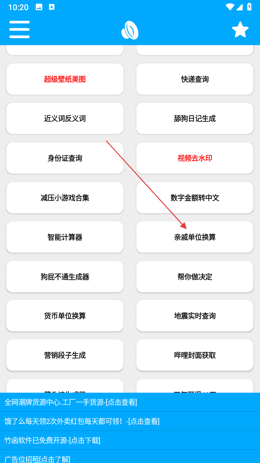 1、打開竹函應(yīng)用,在功能列表中找到親戚單位換算選項并點擊,進入親戚計算器界面。