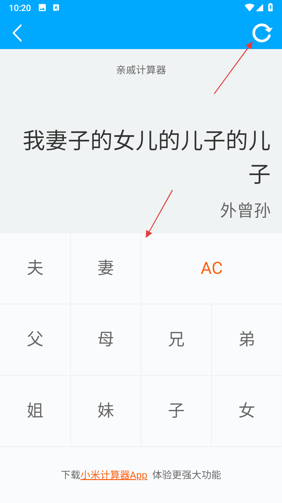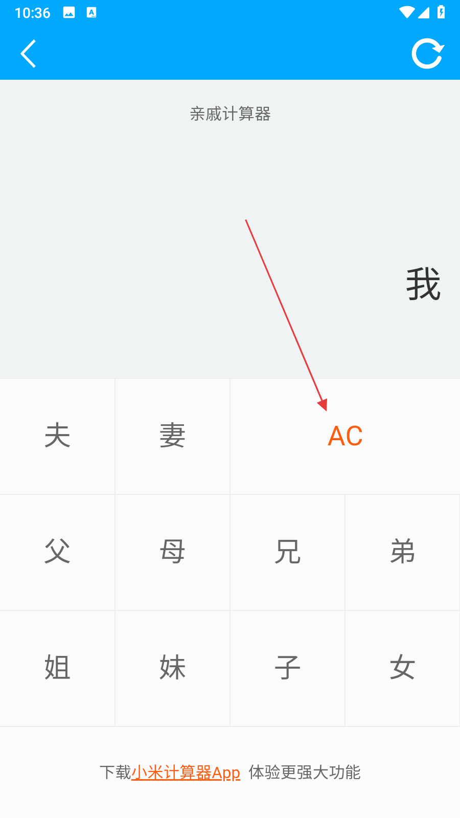 3、若需重新計算,點擊AC按鈕清除當(dāng)前關(guān)系,或點擊右上角刷新圖標(biāo)重置,再重復(fù)步驟2操作。