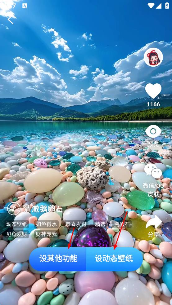 2、在動(dòng)態(tài)壁紙列表里,選擇心儀的壁紙(如清澈鵝卵石),進(jìn)入壁紙預(yù)覽頁面。