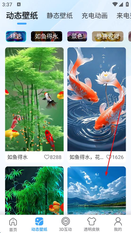 1、打開壁紙軟件,點(diǎn)擊底部“動(dòng)態(tài)壁紙”,進(jìn)入動(dòng)態(tài)壁紙列表,瀏覽不同分類的動(dòng)態(tài)壁紙。