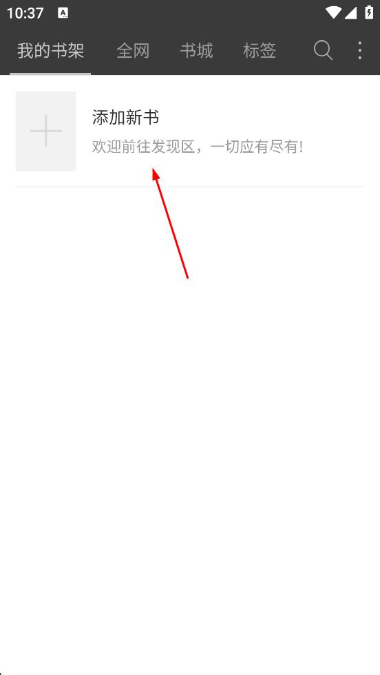 1、打開閱讀軟件,進入“我的書架”頁面,看到“添加新書”提示,前往書城尋找書籍。