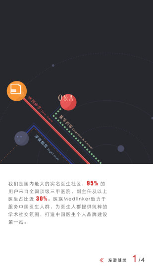 醫(yī)聯(lián)是國內(nèi)最大的實名醫(yī)生社區(qū),95%的醫(yī)生都來自全國頂級三甲醫(yī)院,副主任和以上醫(yī)生有30%的比例,提供了醫(yī)學(xué)問答、圖說病例、匿名社交和醫(yī)生圈等功能,致力于幫助醫(yī)生群體更加方便快捷地獲取來自行業(yè)內(nèi)的優(yōu)質(zhì)信息,應(yīng)用提供了醫(yī)學(xué)問答、圖說病例、匿名社交和醫(yī)生圈等功能,致力于幫助醫(yī)生群體更加方便快捷地獲取來自行業(yè)內(nèi)的優(yōu)質(zhì)信息,用戶可敞開心扉,訴說從醫(yī)所遇到的種種困擾,彼此溫暖治愈,也可共同探討醫(yī)療政策改革等行業(yè)動態(tài),為醫(yī)生群體發(fā)出最真實的聲音。