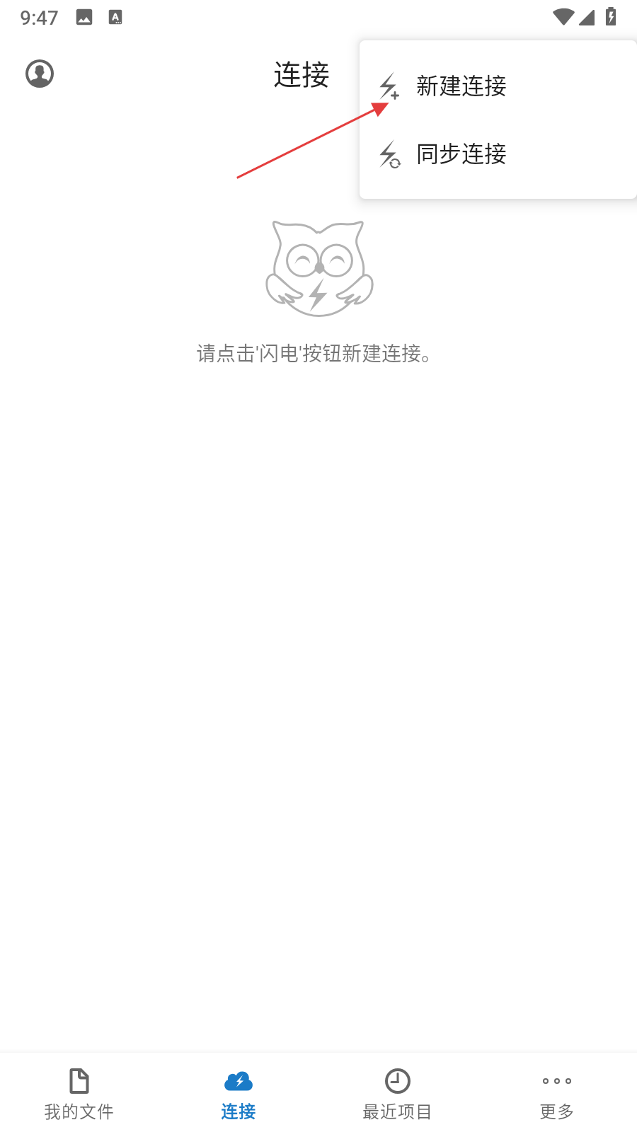 1、打開貓頭鷹文件APP,點(diǎn)擊底部導(dǎo)航欄的連接,進(jìn)入連接頁面。
