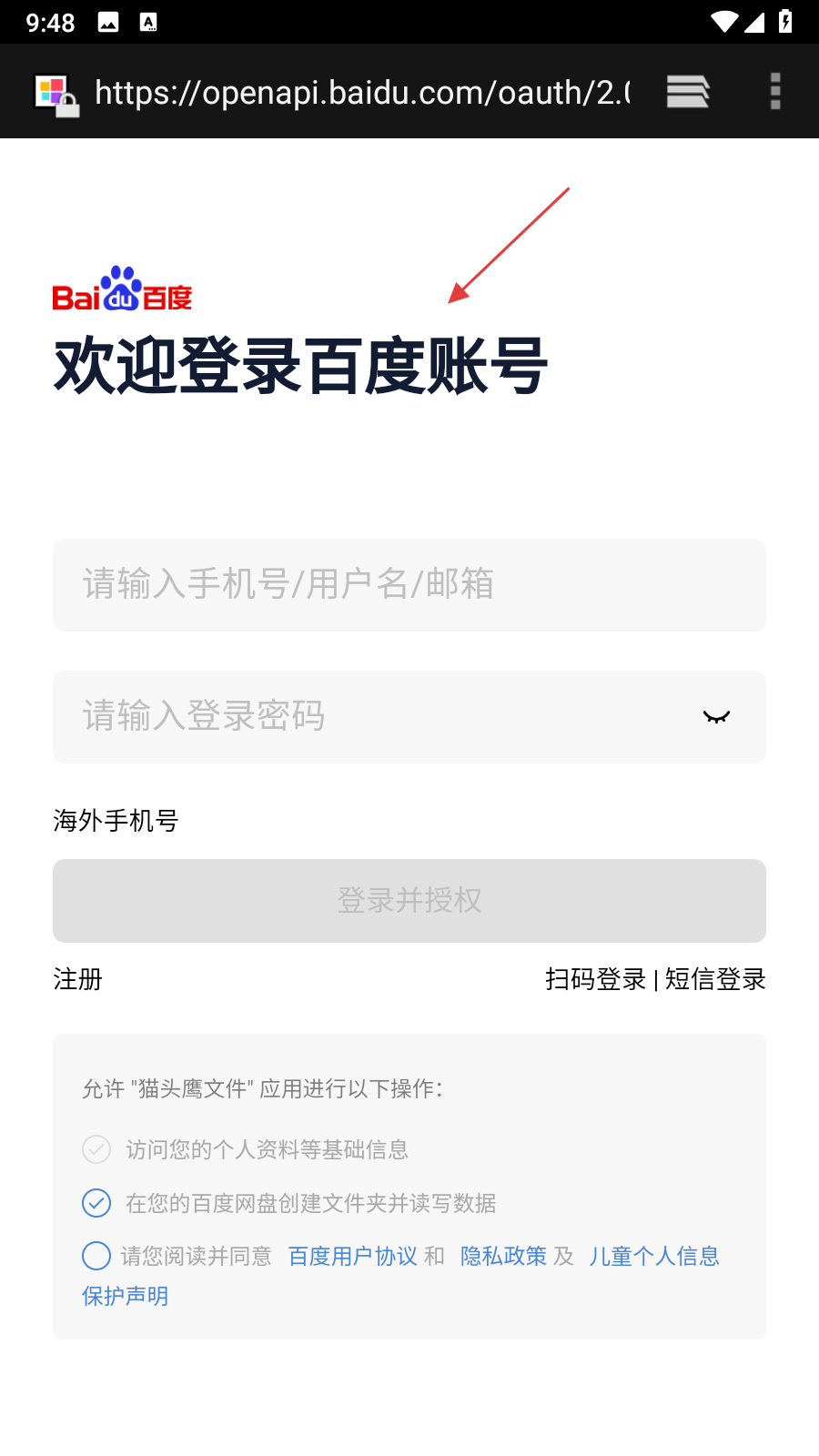 4、頁面會(huì)跳轉(zhuǎn)到瀏覽器的百度賬號(hào)登錄頁,輸入百度賬號(hào)和密碼,點(diǎn)擊登錄并授權(quán)即可連接。