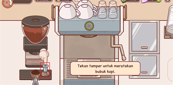 4、咖啡粉裝滿壓粉器后,需要點(diǎn)擊壓粉的小物件,以進(jìn)行咖啡粉的壓制;