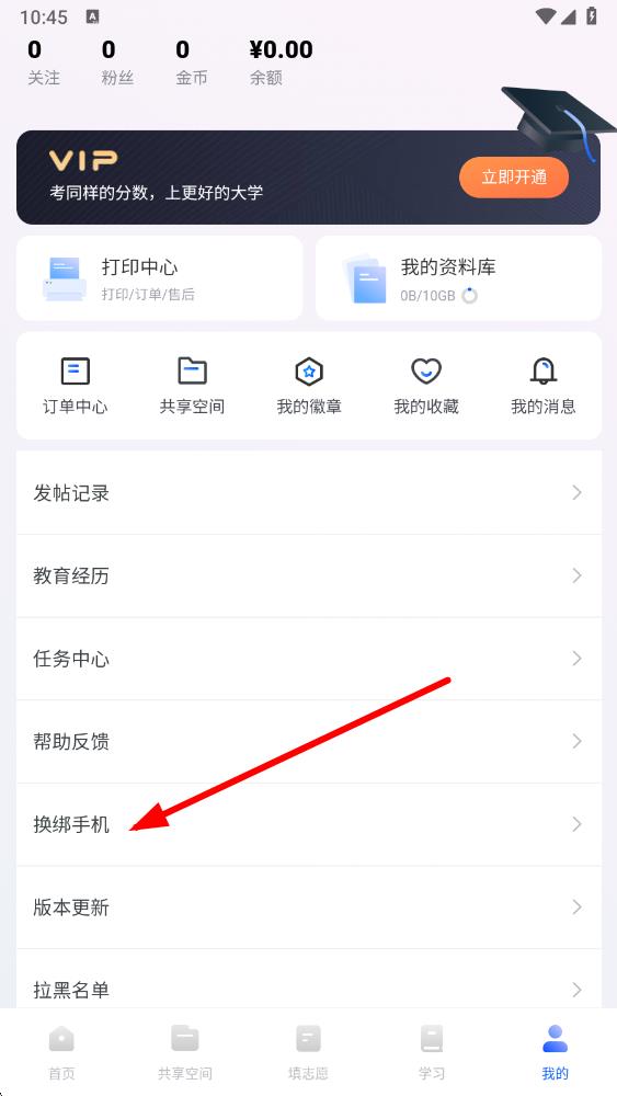 2、在我的界面中,向下滑動(dòng)頁面,找到并點(diǎn)擊換綁手機(jī)選項(xiàng),進(jìn)入手機(jī)號(hào)更換流程頁面。