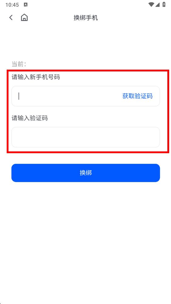 3、在換綁手機(jī)頁面,在指定輸入框內(nèi)準(zhǔn)確填入新的手機(jī)號(hào)碼,獲取驗(yàn)證碼。