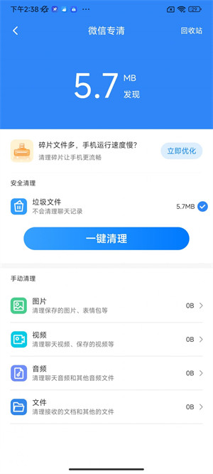 1、支持一鍵清理功能,可以高效清理手機內(nèi)存中的垃圾文件、緩存、及殘留文件等。