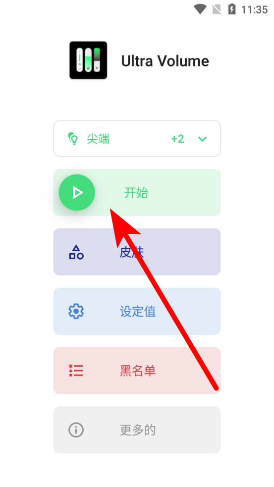 1、打開Ultra Volume應(yīng)用,點(diǎn)擊開始按鈕啟動應(yīng)用相關(guān)功能。