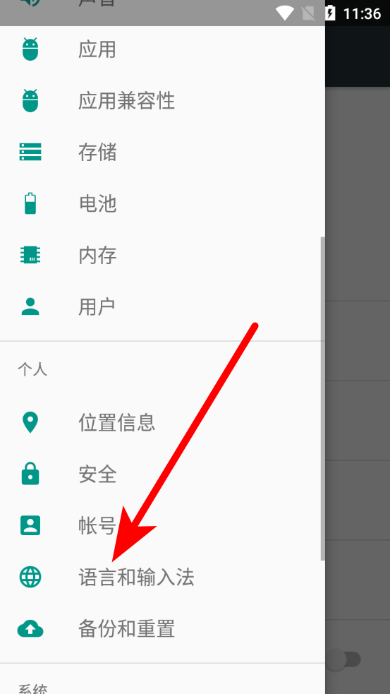 3、在彈出菜單中找到,并點(diǎn)擊語言和輸入法選項(xiàng)。