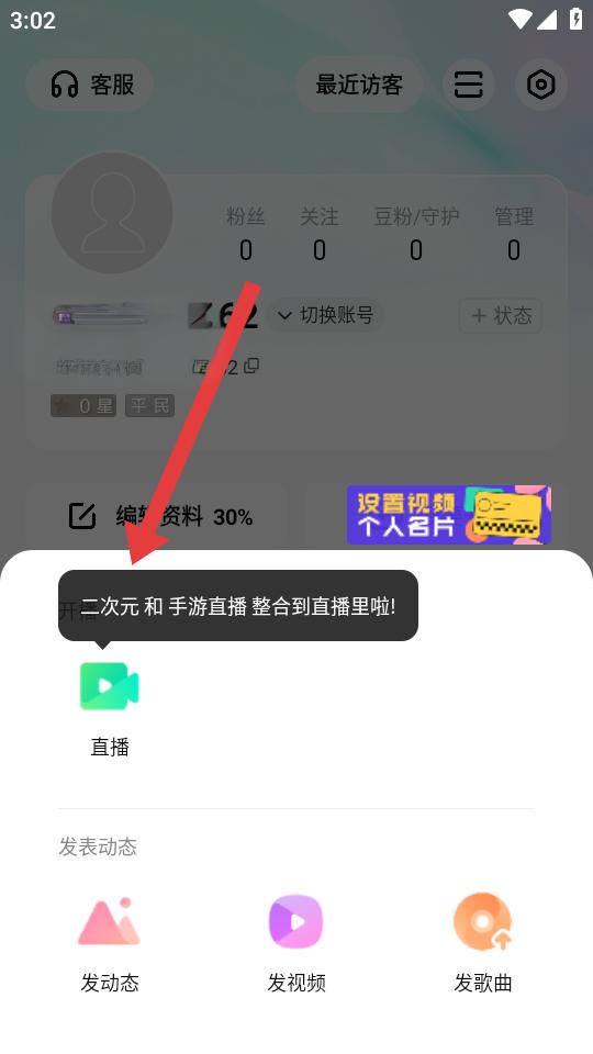 2、在彈出的選項中,我們需要點擊直播,然后進入直播開通的下一步流程。