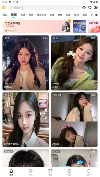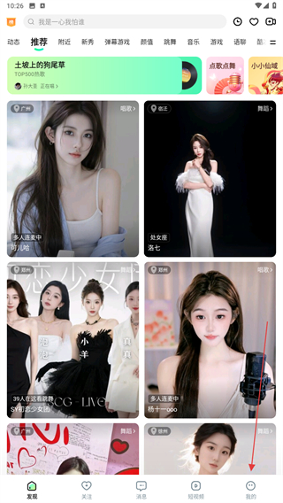 1、打開酷狗直播的APP,進入首頁點擊右下我的圖標。