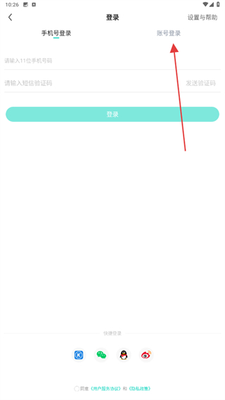 2、進入登錄的界面內(nèi),點擊上方賬號登錄的按鈕。
