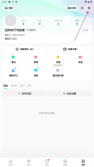 2、在個人主頁內(nèi),點擊右上角設置的功能按鈕。