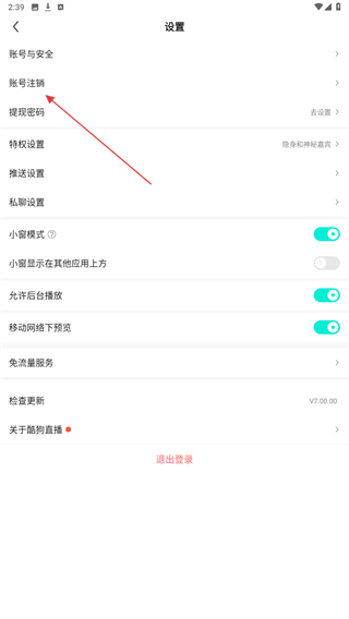 4、進入設置的頁面內(nèi),選擇并點擊賬號注銷即可。