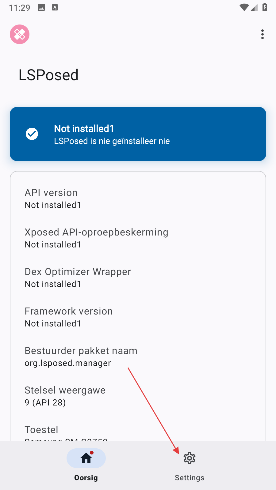 1、打開LSPosed應(yīng)用,在主界面點(diǎn)擊底部的Settings選項(xiàng),進(jìn)入設(shè)置頁面。