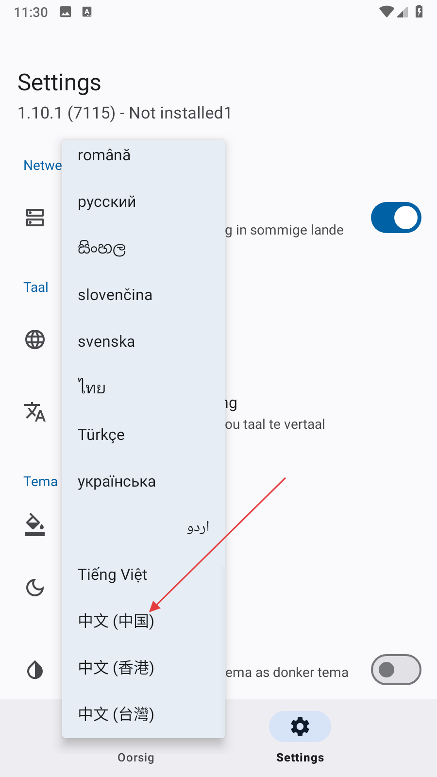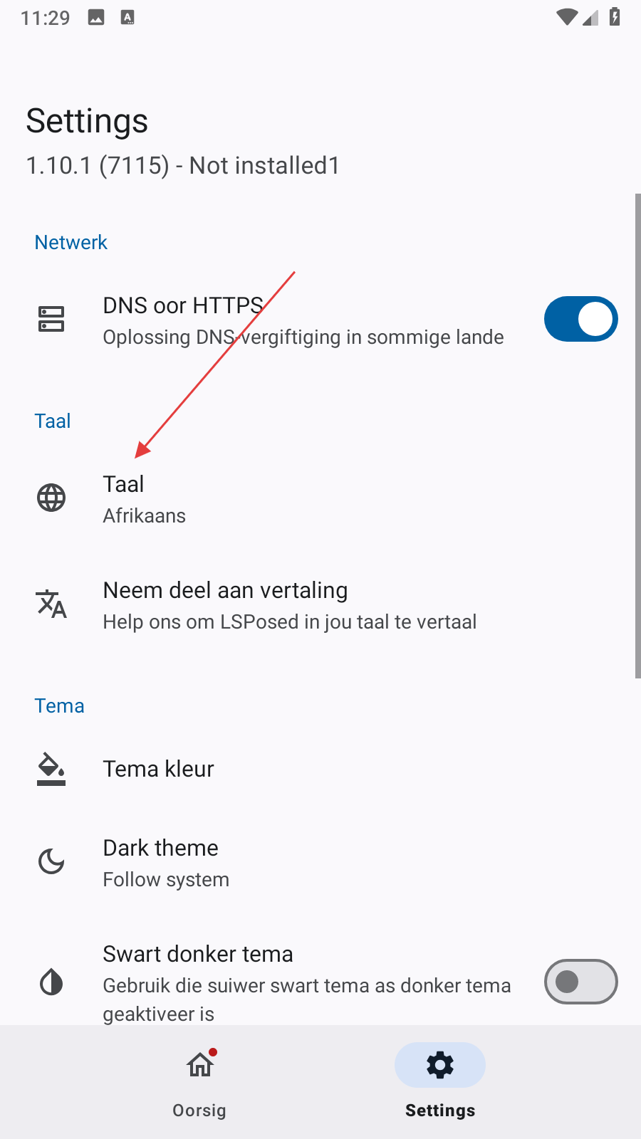 2、在設(shè)置頁面中,找到標(biāo)注為Taal的語言設(shè)置選項(xiàng)并點(diǎn)擊,彈出語言選擇列表。