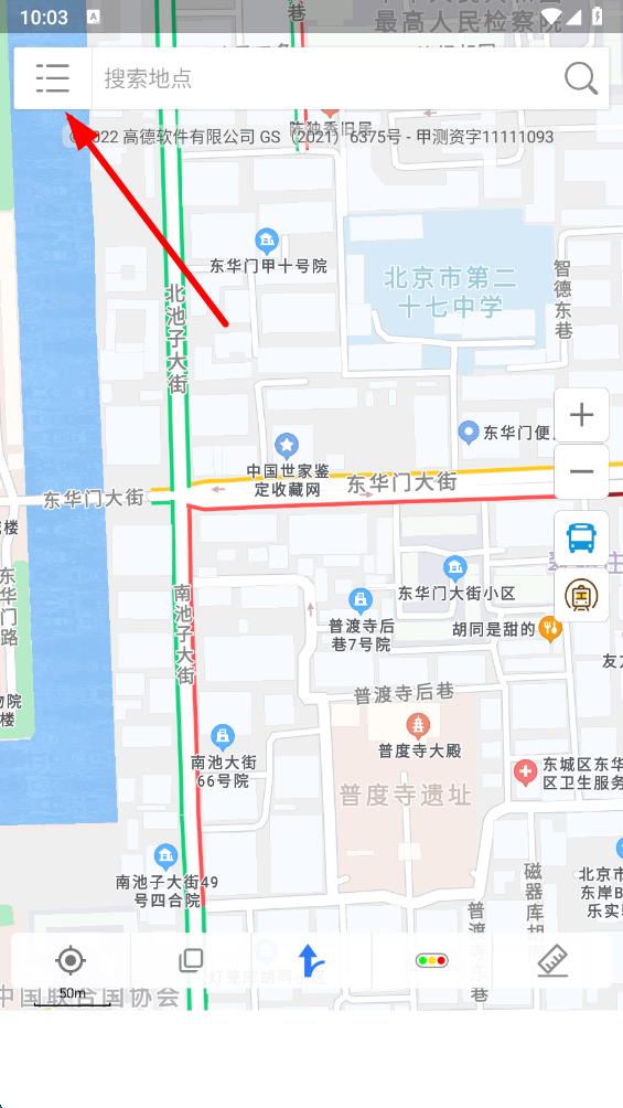 1、打開北斗衛(wèi)星地圖導(dǎo)航應(yīng)用,點擊界面左上角的三橫線菜單按鈕,展開側(cè)邊欄。