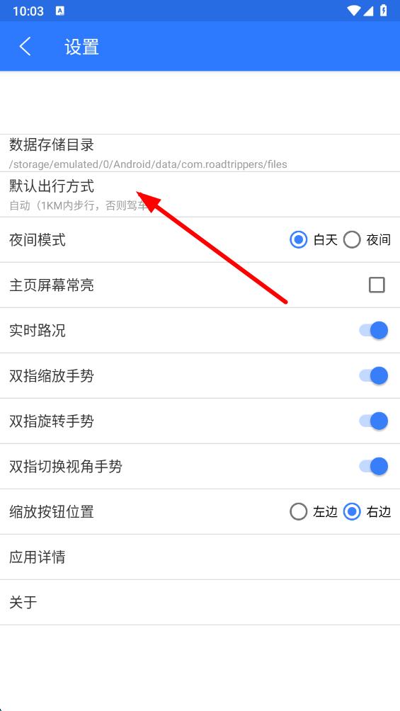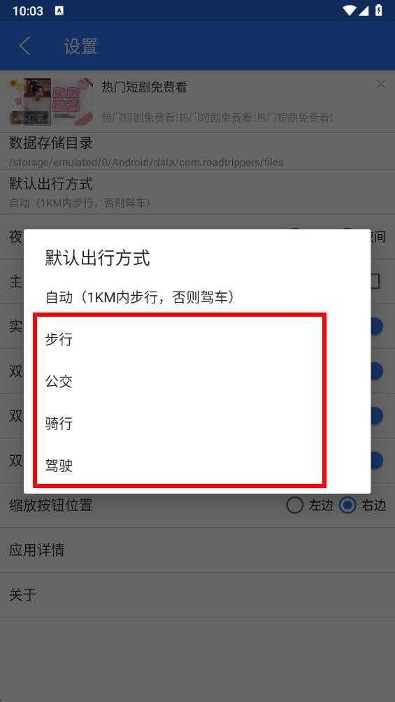 3、在設(shè)置頁面里,點擊默認出行方式選項,此時會彈出出行方式選擇彈窗。
